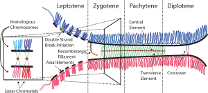- ↑ Zickler D, Kleckner N (1999-12-01). "Meiotic chromosomes: integrating structure and function". Annual Review of Genetics. 33 (1): 603–754. doi:10.1146/annurev.genet.33.1.603. PMID 10690419.