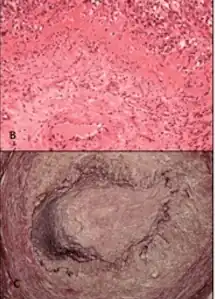 - ↑ Généreau T, Lortholary O, Pottier MA, et al. (December 1999). "Temporal artery biopsy: a diagnostic tool for systemic necrotizing vasculitis. French Vasculitis Study Group". Arthritis Rheum. 42 (12): 2674–81. doi:10.1002/1529-0131(199912)42:12<2674::AID-ANR25>3.0.CO;2-A. PMID 10616017.