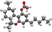 THC acetate ester (THC-O or THCOA) can be synthesized from THC,[2][3] or from THCA. The acetylation of THC does not change the properties of the compound to the same extent as with other acetate esters, as the parent compound (THC) is already highly lipophilic, but potency is nonetheless increased to some extent. While the acetate ester of Δ9-THC is the best studied, the acetate esters of other isomers, especially Δ8-THC but also Δ10-THC are also known, as are other esters such as THC-O-propionate, THC-O-phosphate, THC hemisuccinate, THC hemiglutarate, THC morpholinylbutyrate, THC piperidinylpropionate,[4] THC naphthoyl ester (THC-NE),[5] and THC-VHS, as well as the hydrogenated derivative HHC-O-acetate and the ring-expanded abeo-HHC acetate.
