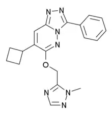 TP-13 is an anxiolytic drug with a novel chemical structure, which is used in scientific research. It has similar effects to benzodiazepine drugs, but is structurally distinct and so is classed as a nonbenzodiazepine anxiolytic. It is a subtype-selective partial agonist at GABAA receptors, binding selectively to GABAA receptor complexes bearing α2 and α3 subunits.[1] It has modest anticonvulsant activity although less than that of diazepam,[2] and its main effect is likely to be selective anxiolytic action, as seen with other related α2/3-preferring agonists such as L-838,417.