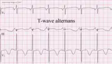 - ↑ Salerno-Uriarte JA, De Ferrari GM, Klersy C, Pedretti RF, Tritto M, Sallusti L, Libero L, Pettinati G, Molon G, Curnis A, Occhetta E, Morandi F, Ferrero P, Accardi F (November 2007). "Prognostic value of T-wave alternans in patients with heart failure due to nonischemic cardiomyopathy: results of the ALPHA Study". J Am Coll Cardiol. 50 (19): 1896–904. doi:10.1016/j.jacc.2007.09.004. PMID 17980258.