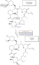 - ↑ Chen D, Zhang L, Pang B, Chen J, Xu Z, Abe I, Liu W (May 2013). "FK506 maturation involves a cytochrome p450 protein-catalyzed four-electron C-9 oxidation in parallel with a C-31 O-methylation". Journal of Bacteriology. 195 (9): 1931–9. doi:10.1128/JB.00033-13. PMC 3624582. PMID 23435975.