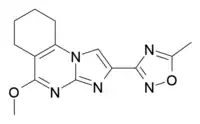 - ↑ Tully WR, Gardner CR, Gillespie RJ, Westwood R (July 1991). "2-(oxadiazolyl)- and 2-(thiazolyl)imidazo[1,2-a]pyrimidines as agonists and inverse agonists at benzodiazepine receptors". Journal of Medicinal Chemistry. 34 (7): 2060–7. doi:10.1021/jm00111a021. PMID 1648620.