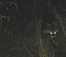 The tapetum lucidum (Latin for 'bright tapestry, coverlet'; /təˈptəm ˈlsɪdəm/ tə-PEE-təm LOO-sih-dəm; pl.: tapeta lucida)[1] is a layer of tissue in the eye of many vertebrates and some other animals. Lying immediately behind the retina, it is a retroreflector. It reflects visible light back through the retina, increasing the light available to the photoreceptors (although slightly blurring the image). The tapetum lucidum contributes to the superior night vision of some animals. Many of these animals are nocturnal, especially carnivores, while others are deep sea animals.