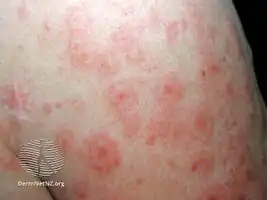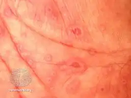 In dermatology, a target lesion or bull's-eye lesion, named for its resemblance to the bull's-eye of a shooting target, is a rash with central clearing. It occurs in several diseases, as follows: