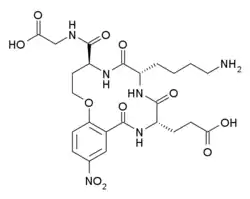 - ↑ Feng Y, Wang Z, Jin S, Burgess K (1998). "SNAr Cyclizations To Form Cyclic Peptidomimetics of β-Turns". Journal of the American Chemical Society. 120 (41): 10768–10769. doi:10.1021/ja981589t.
