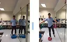 Balance exercises on a foam surface in phase 2. The patient tries to maintain balance first with both legs, then with only the affected leg.