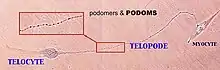 - Figure 24. A podom is a dilated portion of a telopode. Note the endoplasmic reticulum in yellow and mitochondria in red.