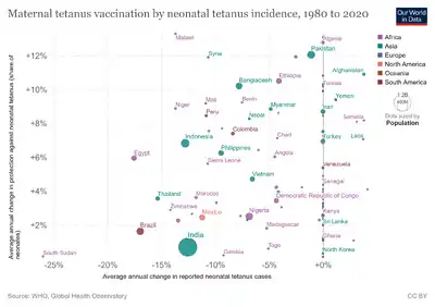 - ↑ "Deaths from tetanus, by age". Our World in Data. Archived from the original on 13 January 2020. Retrieved 13 January 2020.