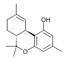 Δ9-Tetrahydrocannabiorcol (Δ9-THCC, (C1)-Δ9-THC) is a phytocannabinoid found in Cannabis pollen.[1] It is a homologue of THC and THCV with the alkyl side chain replaced by a smaller methyl group. Unlike THC and THCV, THCC has negligible affinity for the CB1 and CB2 cannabinoid receptors because of the smaller methyl group and does not have psychoactive effects as a result, but conversely it is significantly more potent than THC or THCV as an activator of the TRPA1 calcium channel which plays an important role in pain perception,[2] and it has been shown to produce analgesic effects via activation of spinal TRPA1 channels. [3][4] THCC was studied by Roger Adams as early as 1942.[5]