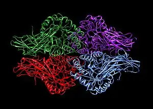 - ↑ "GO term: protein homotetramerization". YeastGenome. Archived from the original on 27 September 2011. Retrieved 14 May 2011.