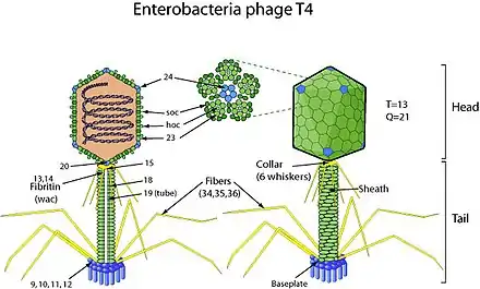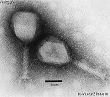 Electron micrograph of two virions of genus Tequatrovirus | |