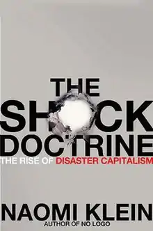 The Shock Doctrine: The Rise of Disaster Capitalism is a 2007 book by the Canadian author and social activist Naomi Klein. In the book, Klein argues that neoliberal free market policies (as advocated by the economist Milton Friedman) have risen to prominence in countries and regions such as the United States, the United Kingdom, China, the European Union, and Eastern Europe, because of a deliberate strategy of "shock therapy". This centers on the exploitation of national crises (disasters or upheavals) to establish controversial and questionable policies, while citizens are too distracted (emotionally and physically) to engage and develop an adequate response and resist effectively. The book advances the idea that several man-made events, such as the Iraq War, were undertaken with the intention of pushing through unpopular free market capitalist policies in their wake.