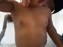Thelarche, also known as breast budding, is the onset of secondary breast development, often representing the beginning of pubertal development.[1] It is the stage at which male and female breasts differentiate due to variance in hormone levels; however, some males have a condition in which they develop breasts, termed gynecomastia.[2][3] Thelarche typically occurs between the ages of 8 and 13 years with significant variation between individuals.[4][5][1] However, the initial growth of breast tissue occurs during fetal development.