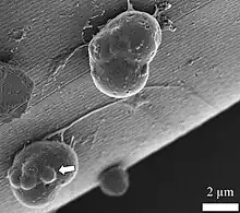 SEM image of thraustochytrid showing ectoplasmic net. | |