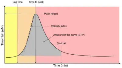 A thrombin generation assay (TGA) or thrombin generation test (TGT) is a global coagulation assay (GCA) and type of coagulation test which can be used to assess coagulation and thrombotic risk.[1][2][3] It is based on the potential of a plasma to generate thrombin over time, following activation of coagulation via addition of phospholipids, tissue factor, and calcium.[4] The results of the TGA can be output as a thrombogram or thrombin generation curve using computer software with calculation of thrombogram parameters.[5][1]