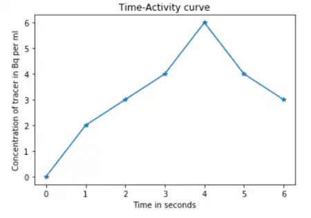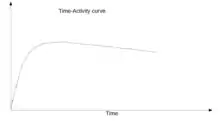 In medical imaging, a time-activity curve is a curve of radioactivity (in terms of concentration) plotted on the y-axis against the time plotted on the x-axis. It shows the concentration of a radiotracer within a region of interest in an image, measured over time from a dynamic scan. Generally, when a time-activity curve is obtained within a tissue, it is called as a tissue time-activity curve, which represents the concentration of tracer within a region of interest inside a tissue over time.