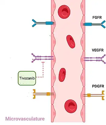 - ↑ Campas C, Bolos J, Castaner R (October 2009). "Tivozanib VEGFR Tyrosine Kinase Inhibitor Angiogenesis Inhibitor Oncolytic". Drugs of the Future. 34 (10): 793–6. doi:10.1358/dof.2009.034.10.1417872. Archived from the original on 2019-12-15. Retrieved 2021-09-13.