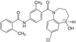 Tolvaptan is a racemate, a 1:1 mixture of the following two enantiomers:[17]