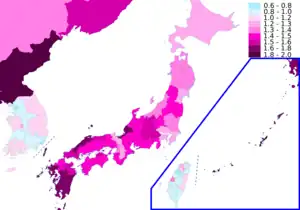 specified (help) - ↑ "Total fertility rate in Japan from 1800 to 2020". Statista. Archived from the original on 2022-04-07. Retrieved 2022-05-09.