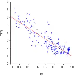 The impact of human development on TFR can best be summarized by a quote from Karan Singh, a former minister of population in India. At a 1974 United Nations population conference in Bucharest, she said "Development is the best contraceptive."[16]