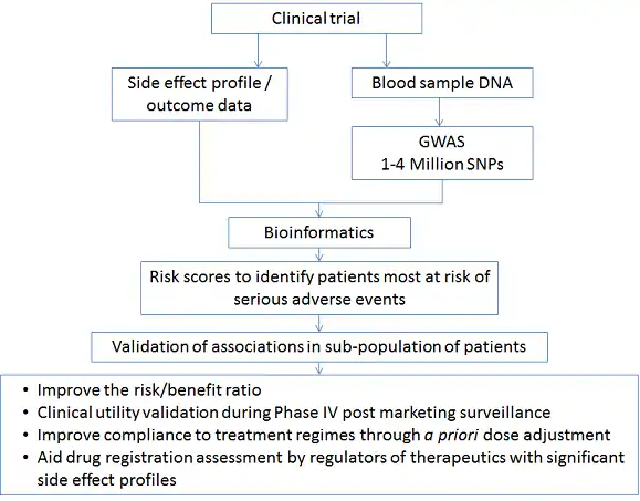 Appropriate analytical approaches for toxgnostic studies include candidate gene studies, GWAS and whole genome sequencing. GWAS and whole genome sequencing are the most comprehensive approaches though careful considerations must be applied to the relevance, analysis and interpretation of the results to prevent over-fitting, which produces false-positive results, a proposed GWAS workflow is shown below.[1]