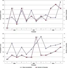 Quarterly precipitation and toxoplasmic reactivation of retinochoroiditis in Argentina[3]