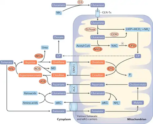 specified (help) - ↑ Raina, Rupesh; Bedoyan, Jirair K.; Lichter-Konecki, Uta; Jouvet, Philippe; Picca, Stefano; Mew, Nicholas Ah; Machado, Marcel C.; Chakraborty, Ronith; Vemuganti, Meghana; Grewal, Manpreet K.; Bunchman, Timothy; Sethi, Sidharth Kumar; Krishnappa, Vinod; McCulloch, Mignon; Alhasan, Khalid; Bagga, Arvind; Basu, Rajit K.; Schaefer, Franz; Filler, Guido; Warady, Bradley A. (August 2020). "Consensus guidelines for management of hyperammonaemia in paediatric patients receiving continuous kidney replacement therapy". Nature Reviews. Nephrology. 16 (8): 471–482. doi:10.1038/s41581-020-0267-8. ISSN 1759-507X.