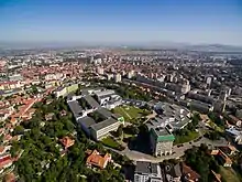 Transilvania University of Brașov (Romanian: Universitatea Transilvania din Brașov; UNITBV, also stylised UniTBv) is a higher education and research institution in Brașov, Romania which comprises 18 faculties, with a number of over 20,000 students and over 690 teaching staff members. Currently, Transilvania University of Brașov is the largest university in the centre of the country,[2] a university that offers programmes in fields such as: mechanical engineering, industrial engineering, computers, construction, forestry, wood engineering, product design, nutrition and tourism, computer science, mathematics, economics, medicine, pedagogy, music, literature and linguistics, law, sociology and social work, psychology. There are 100 undergraduate programmes in the University: 83 full-time study programmes, 17 part-time study and distance learning programmes, 83 master's degree study programmes (80 full-time and 3 part-time) and 21 doctoral fields (full-time and part-time).[3]