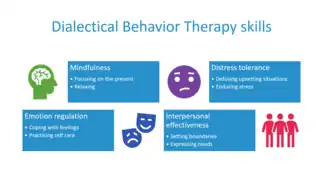Dialectical behavioral therapy is a branch of cognitive behavioral therapy aimed at helping individuals to "accept the reality of their lives".[49] Therapists use strategies such as behavioral therapy techniques and mindfulness to address thoughts and behaviors, and help individuals to regulate and change these. It is usually recommended and used in patients with borderline personality disorder and other personality disorders which are difficult to treat. The specific skills focused on are mindfulness, distress tolerance, interpersonal effectiveness, and emotional regulation.[50] The main goal of DBT is to help clients manage their treatment and better understand their symptoms. The focus of DBT for PTSD is the future and adapting to the symptoms of the trauma.