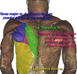 - ↑ Malik, Nazish; Tedder, Brandon L.; Zemaitis, Michael R. (2020), "Anatomy, Thorax, Triangle of Auscultation", StatPearls, Treasure Island (FL): StatPearls Publishing, PMID 30969656, retrieved 2020-11-02