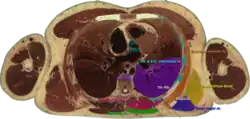 ![]() Cross section #1428 of the Visible Human Male showing the structures of the triangle of auscultation | |