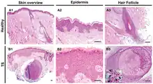 - ↑ Wanat, Karolyn A. (1 February 2012). "Viral-Associated Trichodysplasia". Archives of Dermatology. 148 (2): 219–23. doi:10.1001/archdermatol.2011.1413. PMC 3346264. PMID 22351821.