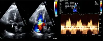 Diagnostic method | Suspected based on a diastolic murmur, confirmed by ultrasound of the heart[1] |
