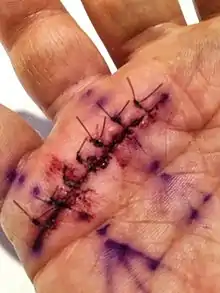 - ↑ Gorsche R, Wiley JP, Renger R, Brant R, Gemer TY, Sasyniuk TM (June 1998). "Prevalence and incidence of stenosing flexor tenosynovitis (trigger finger) in a meat-packing plant". J Occup Environ Med. 40 (6): 556–60. doi:10.1097/00043764-199806000-00008. PMID 9636936.