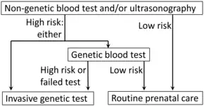 An example of an algorithm for indications for further testing depending on the outcome of non-genetic blood tests including the triple test.[11]