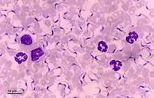Trypanosomatida is a group of kinetoplastid unicellular organisms distinguished by having only a single flagellum. The name is derived from the Greek trypano (borer) and soma (body) because of the corkscrew-like motion of some trypanosomatid species. All members are exclusively parasitic, found primarily in insects.[1] A few genera have life-cycles involving a secondary host, which may be a vertebrate, invertebrate or plant. These include several species that cause major diseases in humans.[2] Some trypanosomatida are intracellular parasites, with the important exception of Trypanosoma brucei.