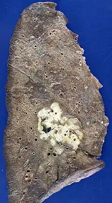 - ↑ Liang HY, Li XL, Yu XS, Guan P, Yin ZH, He QC, Zhou BS, et al. (December 2009). "Facts and fiction of the relationship between preexisting tuberculosis and lung cancer risk: a systematic review". International Journal of Cancer. 125 (12): 2936–44. doi:10.1002/ijc.24636. PMID 19521963. S2CID 21083607.