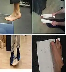 Balance and stability training are especially important to retrain the ankle muscles to work together to support the joint.[30] This includes exercises that are performed by standing on one foot and using the injured ankle to lift the body onto its toes. To further enhance balance and stability, exercise devices such as the wobble board can be used, progressing from double-leg to single-leg stance, first with eyes open and then with eyes closed, for enhanced effectiveness.