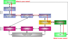 The two-streams hypothesis is a model of the neural processing of vision as well as hearing.[1] The hypothesis, given its initial characterisation in a paper by David Milner and Melvyn A. Goodale in 1992, argues that humans possess two distinct visual systems.[2] Recently there seems to be evidence of two distinct auditory systems as well. As visual information exits the occipital lobe, and as sound leaves the phonological network, it follows two main pathways, or "streams". The ventral stream (also known as the "what pathway") leads to the temporal lobe, which is involved with object and visual identification and recognition. The dorsal stream (or, "how pathway") leads to the parietal lobe, which is involved with processing the object's spatial location relative to the viewer and with speech repetition.