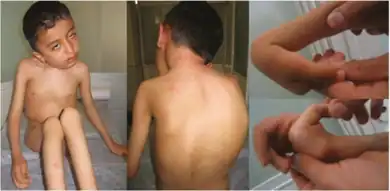 - Contractures (predominantly in proximal muscles, e.g. neck)