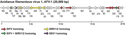 Captovirus is a genus of viruses in the family Ungulaviridae. Archaea acidianus serve as natural hosts. There is only one species in this genus: Captovirus AFV1, also known as Acidianus filamentous virus 1.[1][2]