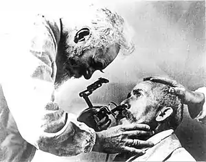 The 19th century marked the dawn of modern scientific medicine, a development that was also very present in Freiburg. At the time, German universities were leading in the sciences, attracting talent from across the globe.[5] This held true for Freiburg as well, as the university and, in particular, its medical faculty, were home to famous scientists and physicians. At the start of the 20th century, the Faculty of Medicine possessed a number of clinics spread out over Freiburg. Plans to merge these clinics into a main building complex were delayed by the onset of World War I. After the war, the clinics were merged at one location to form the University Medical Center, a set of buildings that still form the main campus today. During the Weimar Republic, Freiburg was able to maintain its reputation despite the turbulent times, mending ties with the international academic community.[6] During the Third Reich, the university and its faculties participated in the expulsion of Jewish faculty members and students and most department chairs offered their services to the regime. The pathologist Franz Büchner formed a notable exception when publicly speaking out against the Nazi euthanasia program, the only known protest of a prominent physician against the program.