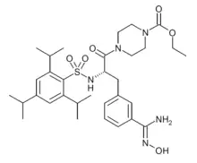 Upamostat (WX-671, Mesupron) is a drug which acts as an inhibitor of the serine protease enzyme urokinase. It is under development as a potential treatment agent for pancreatic cancer, acting to inhibit tumour metastasis.[1][2][3]