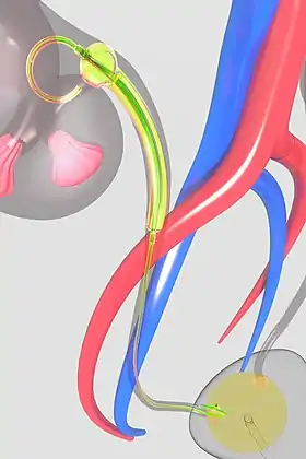 : CS1 maint: multiple names: authors list (link) - ↑ Thiruchelvam N.; Harrison M.; Page A.C. (2007), "The double wire technique: an improved method for treating challenging ureteroileal anastomotic strictures and occlusions", Br J Radiol, 80 (950): 103–106, doi:10.1259/bjr/72561092, PMID 17495059