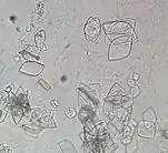 - ↑ Frochot, V.; Daudon, M. (2016). "Clinical value of crystalluria and quantitative morphoconstitutional analysis of urinary calculi". International Journal of Surgery. 36 (Pt D) (Pt D): 624–632. doi:10.1016/j.ijsu.2016.11.023. PMID 27847293.