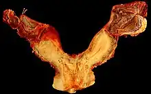 - ↑ Shirley, Sundersingh; Devi, Velusamisri; Krishnamurthy, Radha; Nabhi, Murtyvr; Majhi, Urmila; Selvaluxmy, Ganesharajah (2010). "Endometrial adenocarcinoma involving both horns of a bicornuate uterus". Journal of Cancer Research and Therapeutics. 6 (3): 304–306. doi:10.4103/0973-1482.73322. PMID 21119258.