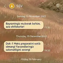 - ↑ ""Dok-1 Maks" dorisini fosh qilgan tibbiyot xodimlari o'z vaqtida SSVga xabar bermagani ma'lum bo'ldi". daryo.uz. 29 December 2022. Retrieved December 29, 2022.