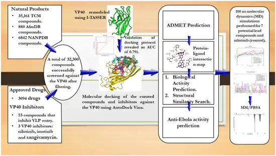 - ↑ Balmith, Marissa; Soliman, Mahmoud E. S. (2017-02-01). "VP40 of the Ebola Virus as a Target for EboV Therapy: Comprehensive Conformational and Inhibitor Binding Landscape from Accelerated Molecular Dynamics". Cell Biochemistry and Biophysics. 75 (1): 65–78. doi:10.1007/s12013-017-0783-8. ISSN 1559-0283. PMID 28144904. S2CID 26535324.subscription needed