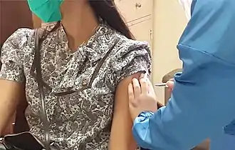 Volunteer participating in phase 3 trial of CoronaVac in Padjadjaran University, Bandung, West Java, Indonesia.